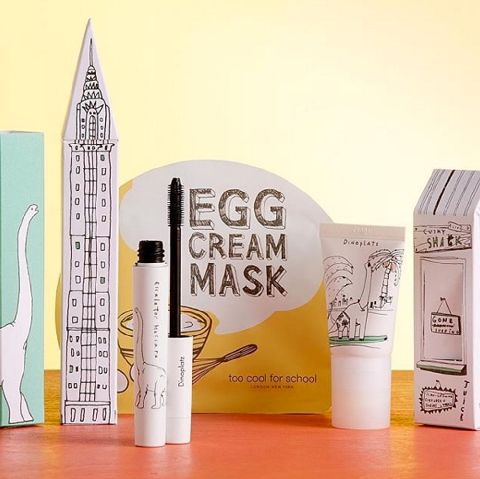 Skincare is just as important as the make up itself and Too Cool For School emphasizes that. Too Cool For School is one indie brand that is sold at Sephora. They have different themed product lines such as Dinoplatz and Glam Rock and offer both makeup and skin care including an egg cream mask.