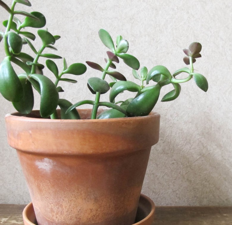 A Jade houseplant is super easy to keep indoors, and it is considered to be a symbol of good luck. These plants needs lots of light and to be fertilized every so often. In order to thrive successfully, Jade's need to be watered just enough, but not too much (or it will cause root rot). Don't let the soil dry completely, water when just the top is dry to the touch. If leaves are drying out or falling off, it's probably because of lack of water.