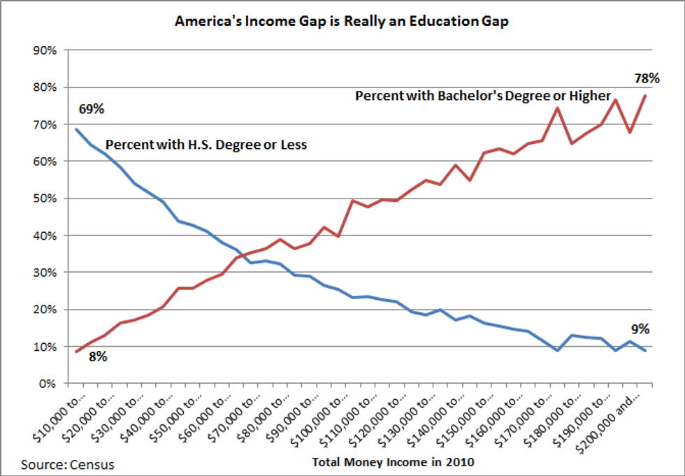It could be argued that the people in that lower income bracket had the chance to attend college but chose not to. Thus they limited their own potential, however, that isn’t necessarily true, not all students have the opportunity to attend college.