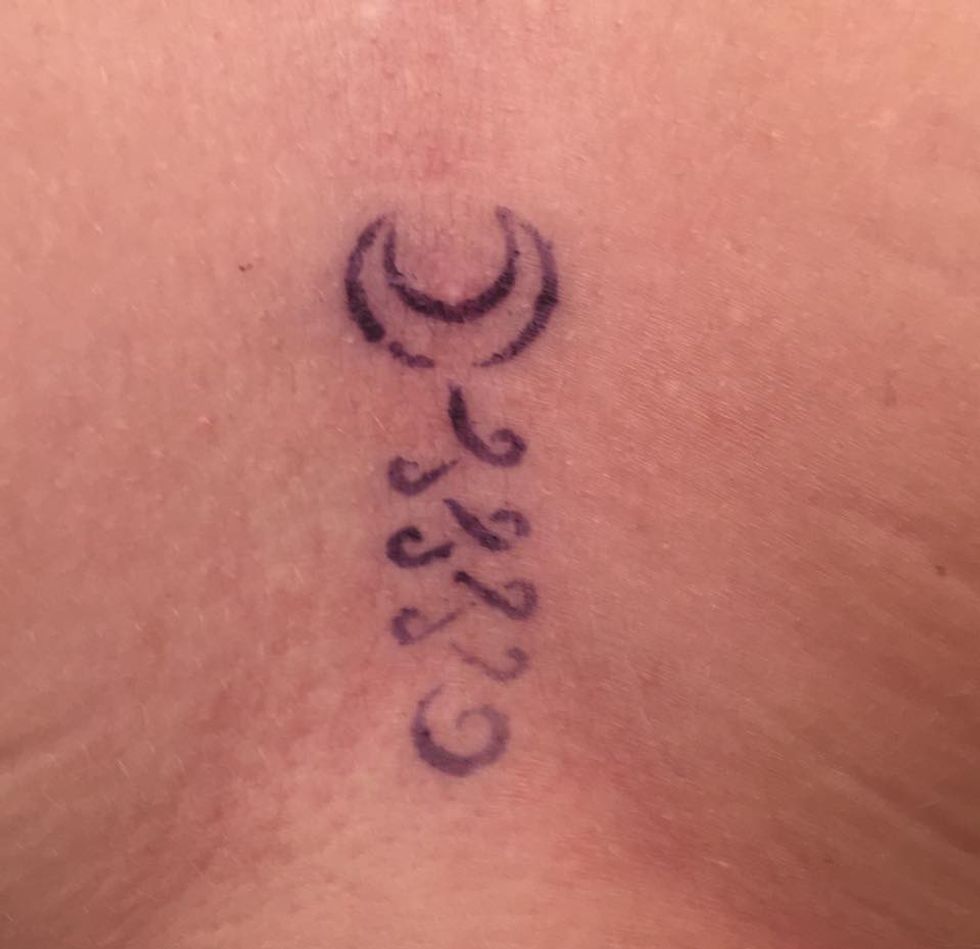 The tattoo is very faint when you first apply it, but it gets darker within 12-24 hours. This is what it looked like after I had pulled the stencil off: