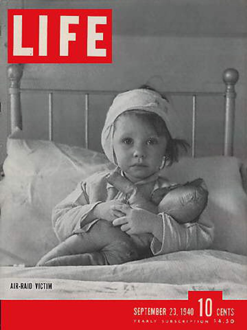 In World War II the distinction between civilian and military life was erased and over 50 million people died as a result, making it the most deadliest war in human history. Thousands of Jewish children died in the Nazi concentration camps and nearly as many died as a result of the atomic bombs on Hiroshima and Nagasaki. This one, taken by Cecil Beaton, is one of the most famous photos depicting children in WW II. It shows 3-year-old air raid victim, Eileen Dunne, who was hospitalized following Germany's bombing of London. The horror in her eyes tells it all. The photo was featured on the cover of Life magazine and was used to illustrate the huge impact of this war on children.(Ronk, 2014)