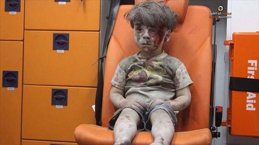 Yet another child victim of the horrific war in Syria -- Omraan Daqneesh. Daqneesh was injured last week in an alleged Russian Air Force strike on the rebel-held al-Qaterji neighbourhood of Aleppo, Syria. He was rescued with his parents and three siblings. One of them, Ali, recently lost his life at the age of 10. The footage of Omraan, stunned and baffled, touching his wounded head and wiping the blood of his hands quickly became a phenomenon in international media. After the image of Alan Kurdi, once again it caused international outrage and drew attention to the ongoing war in Syria. And this photo went down in history as another iconic image of children in wars.(Kennedy, 2016)