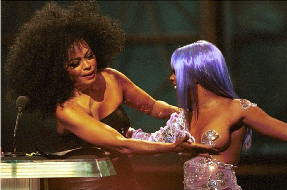 Lil Kim's ensemble was enough to turn heads, but when she was presenting Best Hip-Hop Video with Diana Ross things got a little handsy.