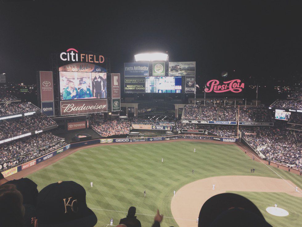 Surprisingly, there was hardly any traffic and since we got there 15 minutes before first pitch, everyone was already in their seats and the outside of the stadium was empty, we were able to walk right in without waiting. Mets fans and employees immediately started making friendly jabs at us as Spenser was rocking a KC hat and royal blue pants.