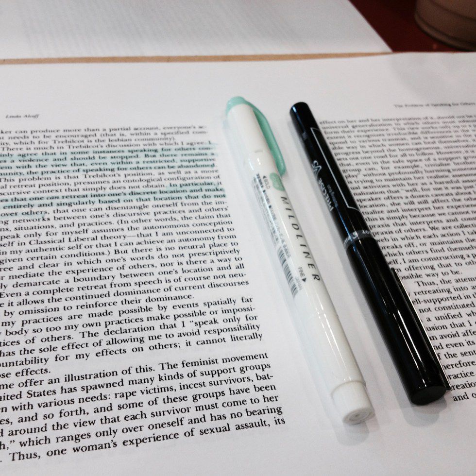 2. Highlighters, two pens, and one pencil - Why so specific? That’s just the amount that I keep in my backpack that tend to get the job done right for readings and/or note rewriting.