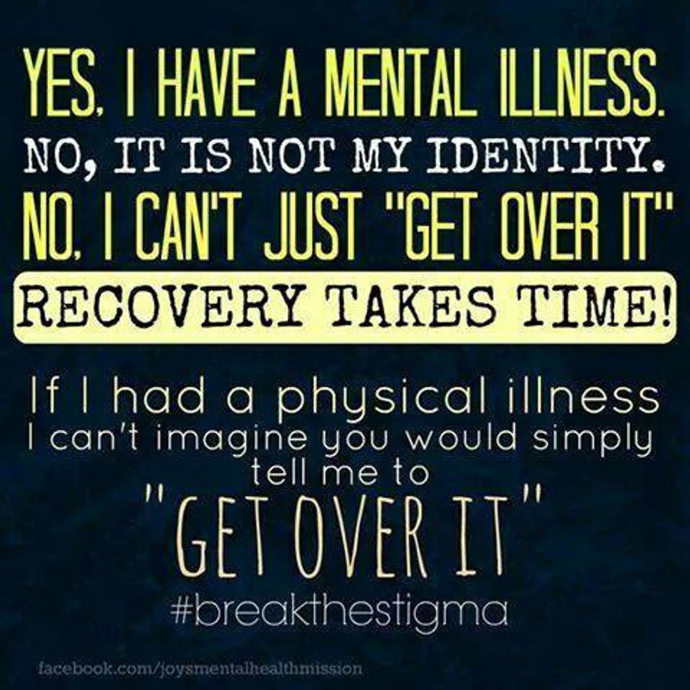 Mental illness is not easy. Not only are you dealing with an incredibly hard life, but people often don't respond to "I have anxiety and it's hard for me to speak up in class often" as nicely as they do "I'm losing my voice and can't present today." I will not speak for everyone, but I know this has been my experience.