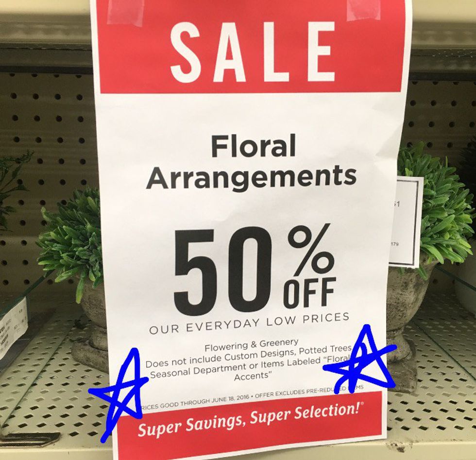 Things we want to say to customers: “Again with the reading. The sign says floral arrangements on sale, so no your potted tree won’t count in the sale.”