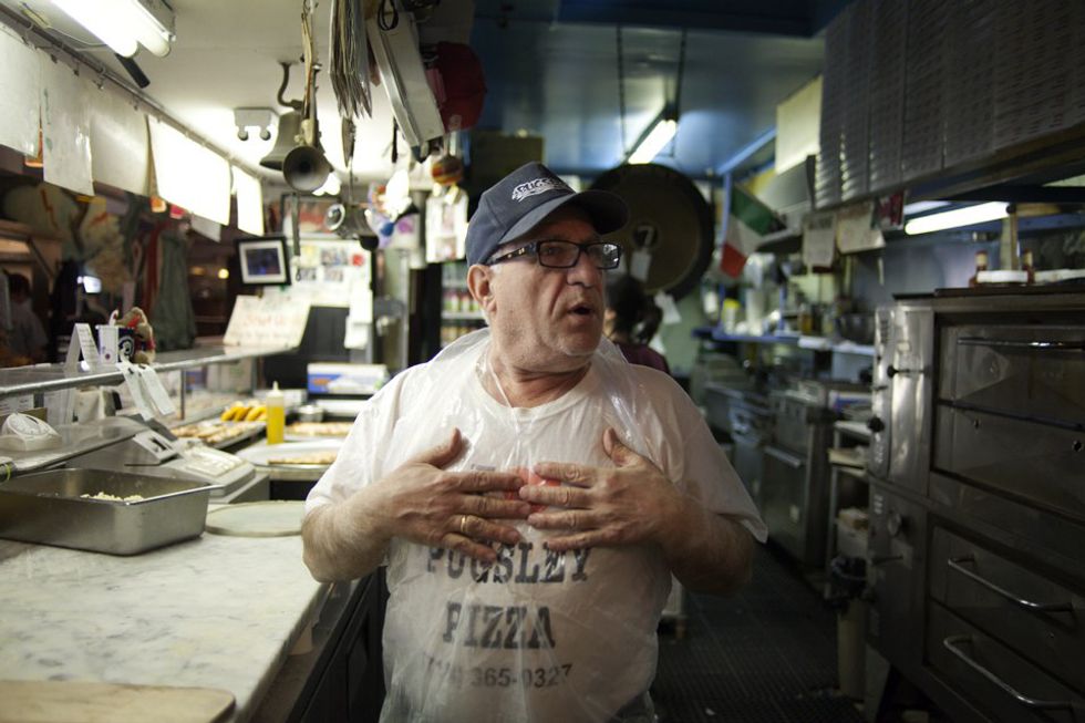 On Fordham Road, groups of students step into the toasty restaurant of University Pizza, anxiously waiting to get their hands on a hot slice. On Arthur Avenue, a local member of the Bronx community walks through the doors of Full Moon Pizza for a quick lunchtime meal. On East 191st Street, crowds of hungry teens pile in line at Pugsley’s Pizza while being serenaded by Salvatore, or "Sal" Natale, the owner, playing old time ballads on his saxophone.