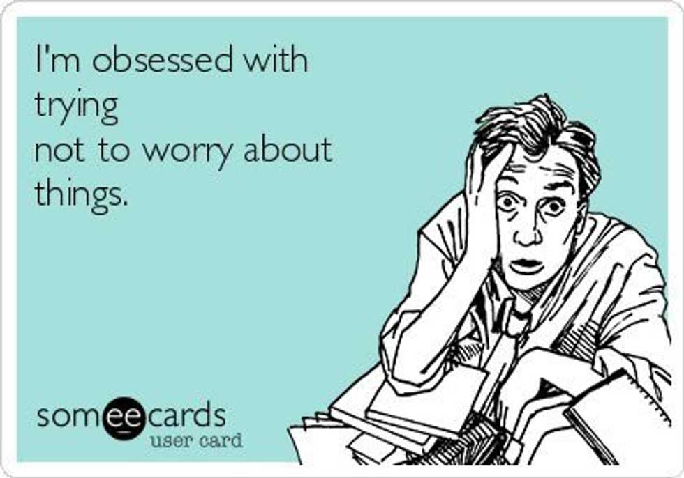 The constant fear that someone is mad at you, (because why else would they take more than five minutes to text back?), that someone tapped your webcam and is watching you at every moment (totally realistic, right??), that when someone you love has the common cold they’re terminally ill (thanks, Grey’s), or that you left your flat iron on or the door unlocked so you have to turn the car around to go home and check. And when you’re faced with choices? Well, you’ll need about a millennium to decide. And in those rare instances that you decided not to worry and it ends up turning out how you should have feared, well, goodbye to instances of not worrying.