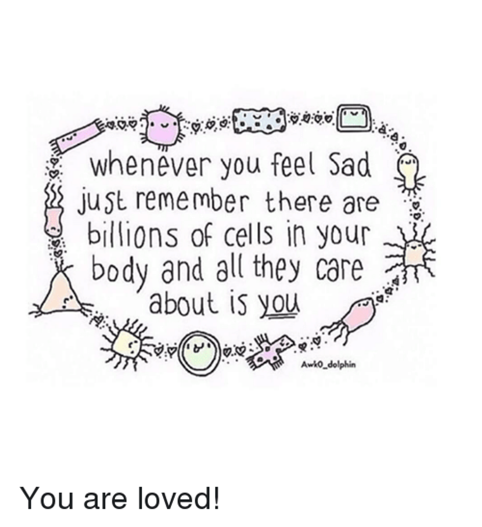 "Whenever you feel like sad just remember that there are billions of cells in your body and all they care about it is you"- Unknown