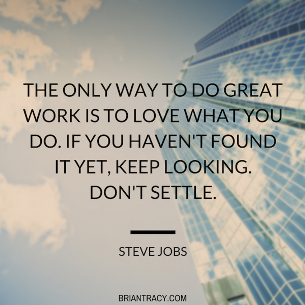 3. "The only way to do great work is to love what you do. If you haven't found it yet, keep looking. Don't settle."—Steve Jobs
