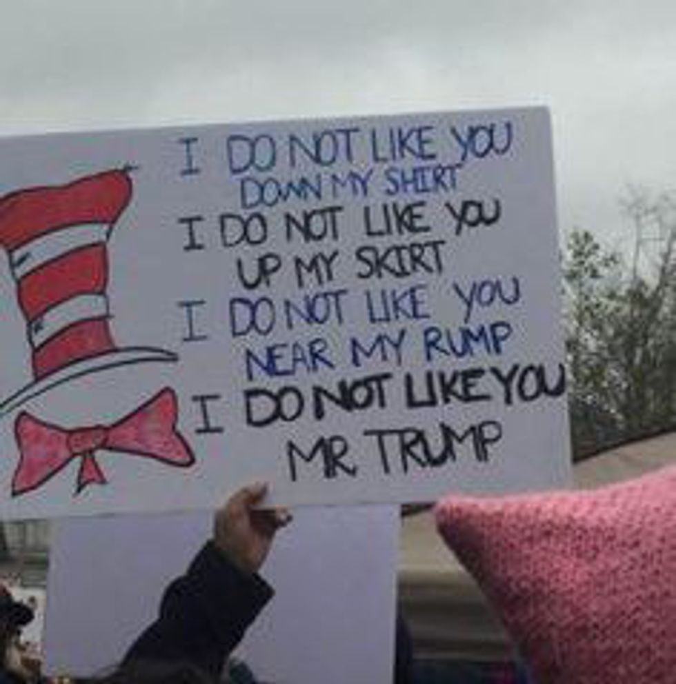 6. "I do not like you down my shirt. I do not like you up my skirt. I do not like you near my rump. I do not like you Mr. Trump"