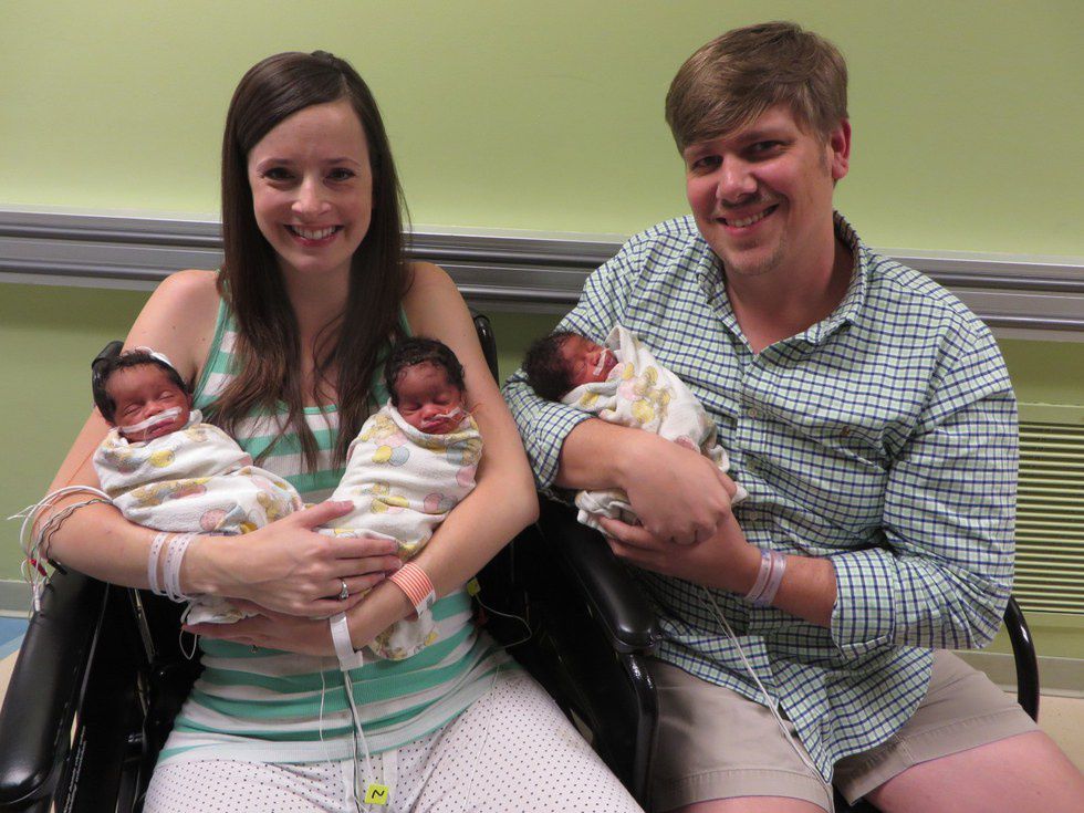 A while later the couple found out about the National Embryo Donation Center. They then knew that they wanted to expand their family, but with the intention of making their other two children feel like they fit in. So Rachel had two African American female embryo's implanted into her uterus. They expected twin girls. Much to their surprise, one of those embryos split in two, blessing the couple with triplets instead of twins! Aaron's statement from The Washington Post summed up the amazing experience.