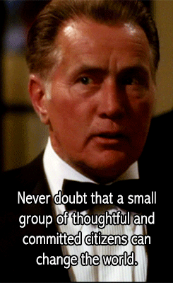 7) "Look, if you think we're wrong, then I respect that. But if you think we're right and you won't speak up because you can't be bothered, then God, Jed, I don't even want to know you," (Mrs. Landingham).