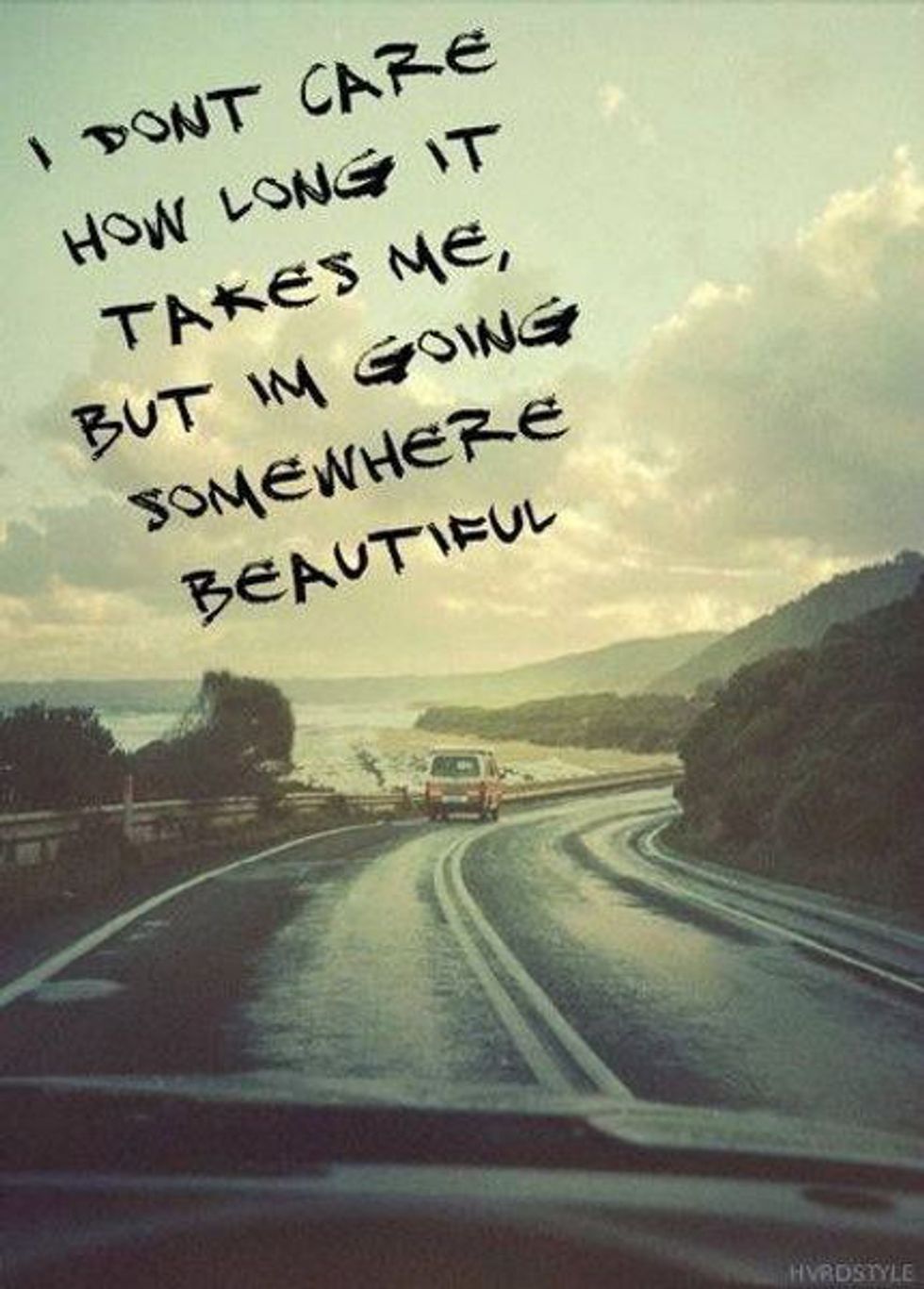 "I don't care how long it takes me, but I'm going somewhere beautiful."
