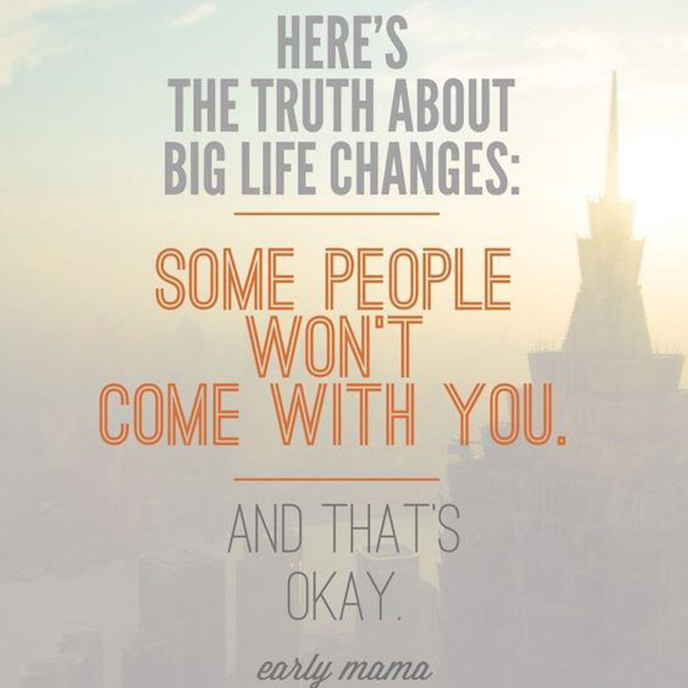 "Here's the truth about big life changes: Some people won't come with you, and that's okay."