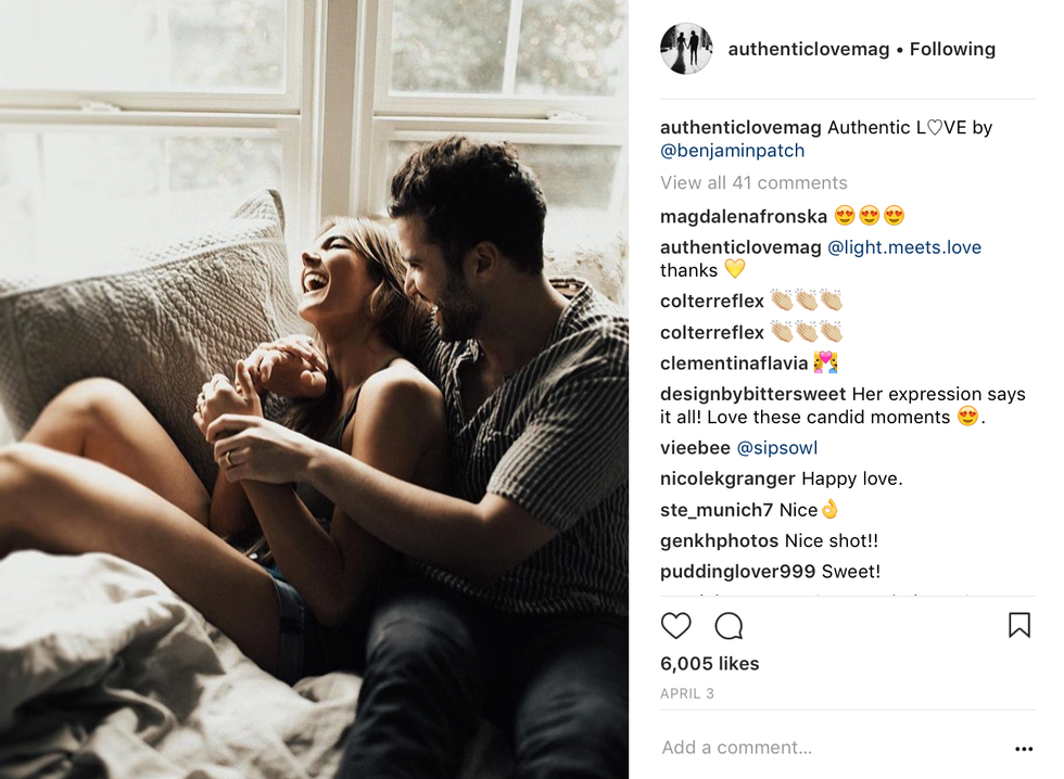 If you’re a romantic at heart or just love good couple photography, authenticlovemag is for you. Best known for their talent for authentically capturing love and affection in the purest moments.
