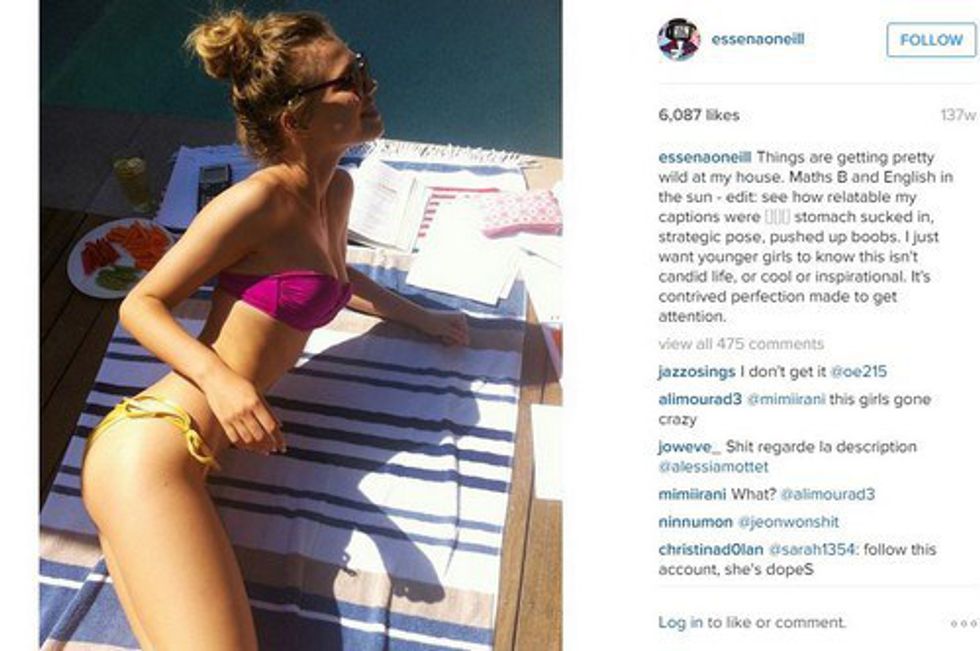 O’Neill said that she would pose, “stomach sucked in, strategic pose, pushed up boobs.” And she wants other girls to know that, “this isn't candid life, or cool or inspirational” and, “it’s contrived perfection made to get attention.” An example a caption she changed on one her stunning photos included:
