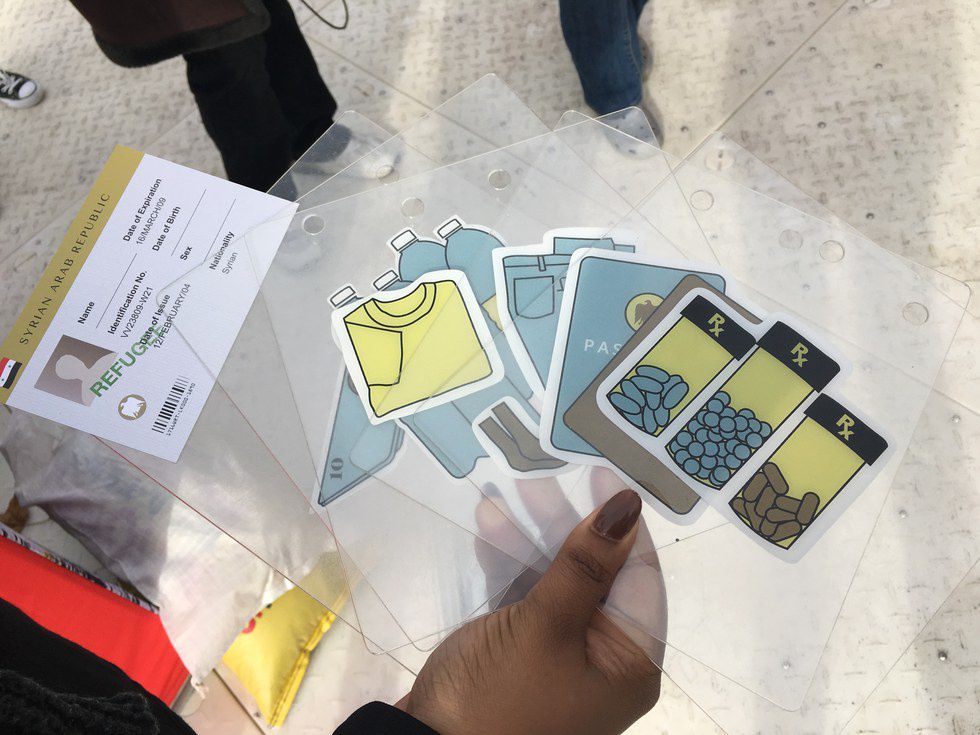 The next station talked about the legal differences between immigrants, refugees, asylum seekers, and those internally displaced. There are different processes for arriving to a new country based on what category a person fits into, some taking much more time than others. Again, we had to dispose of an item before entering our new country. I had to choose between taking clothing or medicine with me.