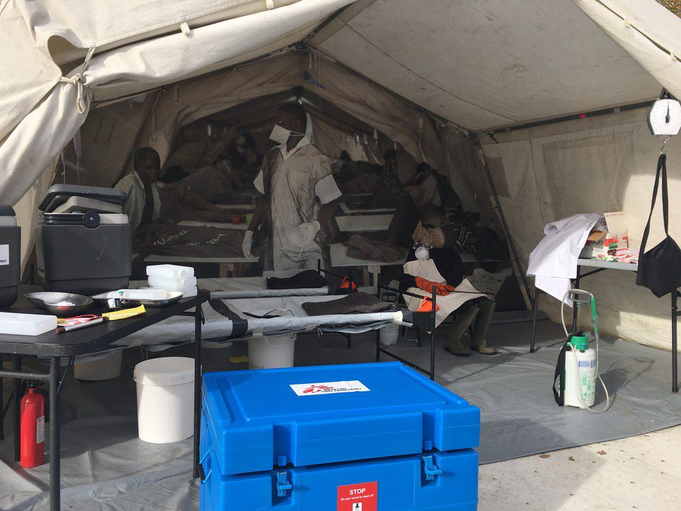 Next was the medical tent. Common diseases seen in refugee camps include cholera, malaria, tuberculosis, and malnutrition. These cots have large holes in them, under which is a bucket to collect diarrhea from those with cholera. Large coolers lined with icepacks keep vaccines and medications.