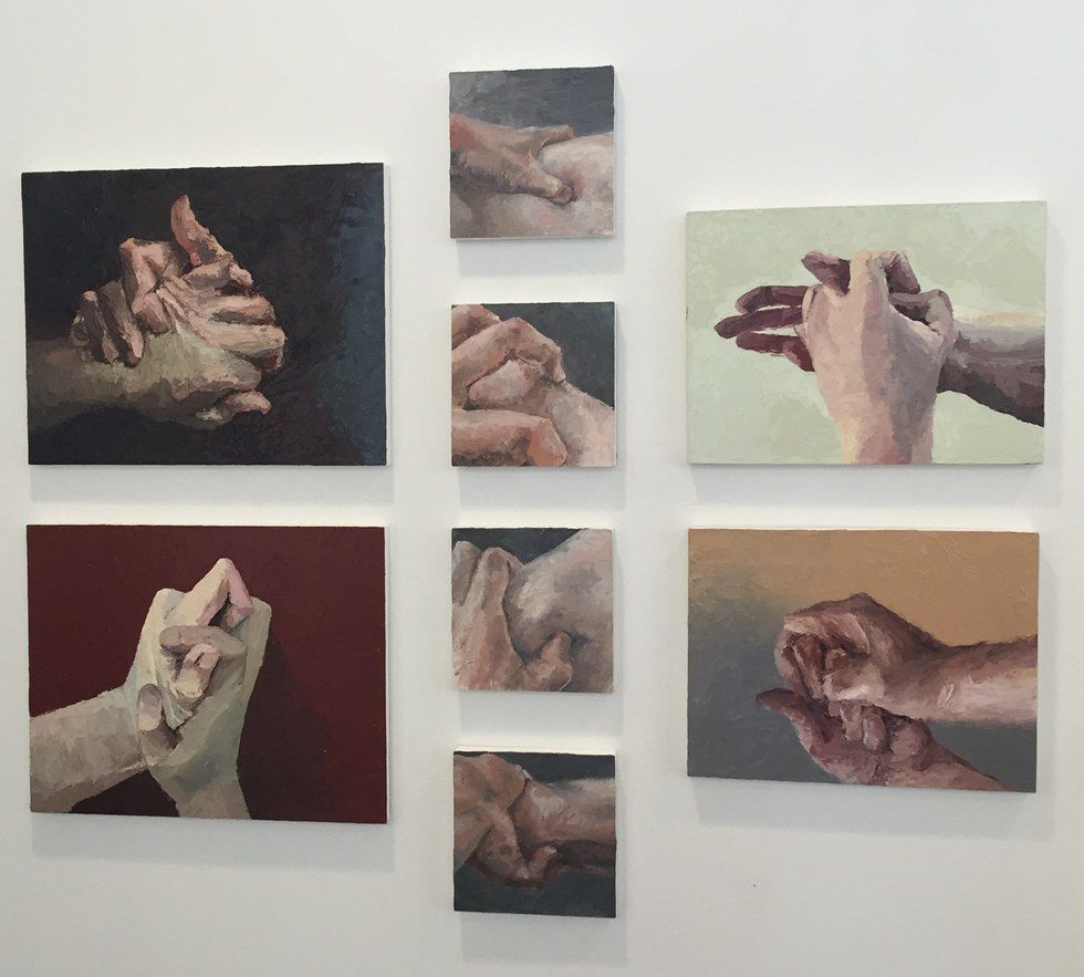 Leah Nicolich’s Internal Struggles features several paintings of hands grasping at flesh, "trying to pointlessly change the skin," as well as piles of small, sculpted hands contorted into uncomfortable positions.