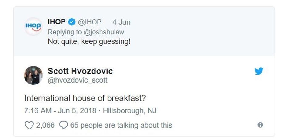 When I was a kid, my mom used to take my brother and me to IHOP every Saturday. I would always get original pancakes topped with strawberries and extra whipped cream. To be honest with you, I don't really like pancakes, but the whipped cream is where it's at! Nonetheless, IHOP makes up a large part of my childhood. If you have been near the internet over the past few days, you may have noticed that IHOP is changing their name to IHOB and will not tell the internet why until June 11.