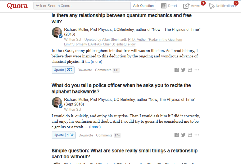 - Quora Think sophisticated Yahoo Answers. This site is full of short or pages long intellectual answers to all sorts of questions. You can ask your own or dig around to find the topics you enjoy reading. Explore the work of the top writers, some of which are renowned professors at the world’s best schools. They have fluff questions, deep questions, open-ended questions, story sharing questions. Collect them all!