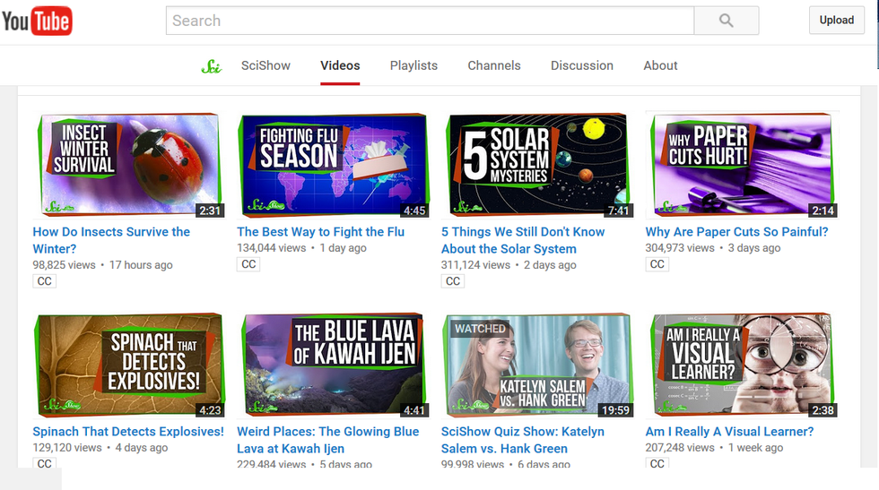 - SciShow/MentalFloss/ CrashCourse If you’re on the internet, you know these ones. The MentalFloss shows, CrashCourse Videos, and SciShow videos have probably helped you on your homework at least once. But there are more videos being put out every day by the lovable and hilarious Green brothers. Stop by SciShow to have your questions answered by the quirky Hank Green and his colleagues. Try to keep up with the fast talking John Green in CrashCourse World History. Need a breather from all the information? Go watch John attempt to debunk life hacks on the MentalFloss channel.