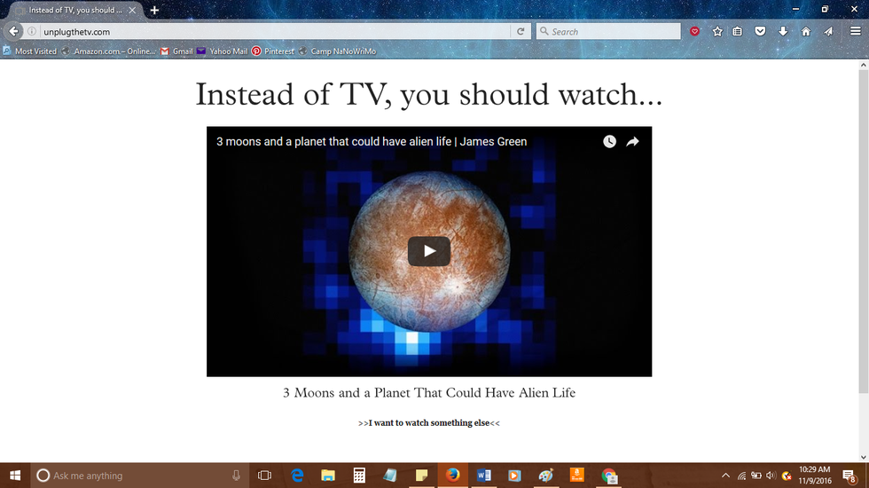 - UnplugTheTV.com Can’t decide on what to watch? Check out this handy site that automatically supplies you with a video on a subject you might not have considered looking into before. One day it’s whales. The next it’s space. Who knows what the next one will be? This site uses TedTalks and other resources that are intellectual and engaging.