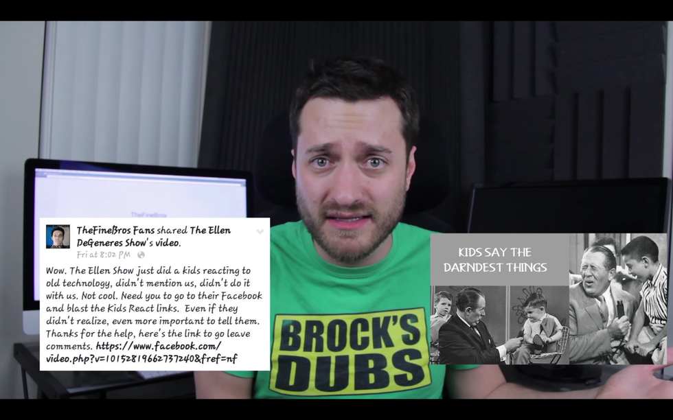 This seems well-intended (albeit, a bit pretentious), in light of the comments in the latter half of the video that denounce channels and shows that have stolen what they deem as their -- and only their -- format, the Fine brothers' actions may have more behind them than community-building. In the past, they have gone after The Ellen Degeneres Show for doing a "Kids React" segment and reportedly had react videos taken down for copying their format. Benny and Rafi also stated in the React World announcement video that they were taking this action to work as the counter-balance to Hollywood, while they themselves were creating a Hollywood-like conglomerate, using the techniques of television shows like "America's Got Talent" to prevent people from stealing their label and ideas.
