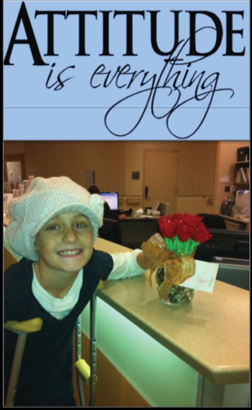 Well, I have my favorite bible verse: Philippians 4:13, “I can do all things through Christ who gives me strength”. That was what was on my first prosthetic leg that I got, that was something that always stuck with me. We couldn’t stop going, because there were so many people helping us, like people from the church would send us blankets, I could never get discouraged or want to give up because there were so many people supporting me. My dad said you can let 30 seconds go by when you first find out and it’s sad but the rest of the time you have to be positive.