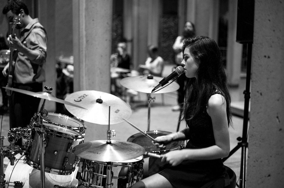 I started out on classical piano lessons when I was six, after deciding I wanted to be able to play “My Immortal” by Evanescence on piano (which I never actually ended up learning…). After messing around on the video game Rockband when I was ten, I was inspired to play real drums and began formal lessons with Dave Blackburn. I also learned some guitar from him and have also picked up bass since then. As for singing, I only started about 2 years ago after I began songwriting.