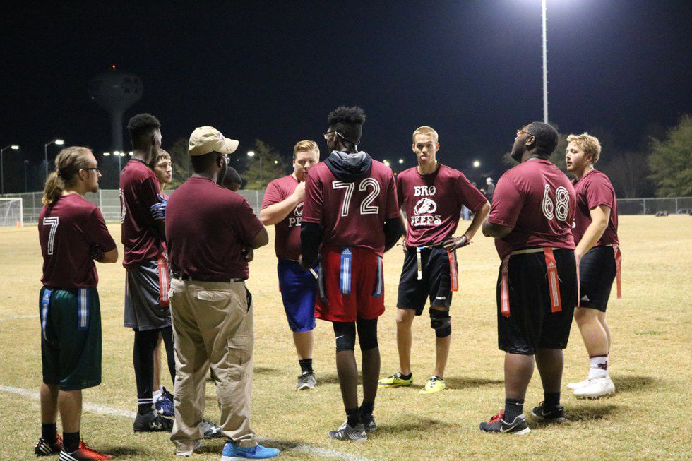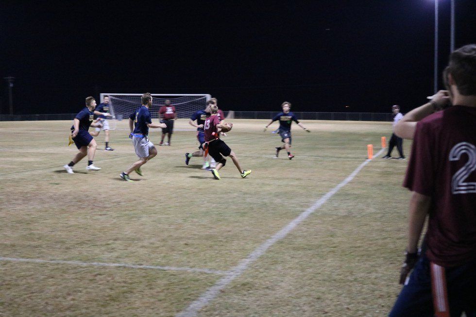 Anyway, here are some pictures from my flag football team this year. We went 1-6, but we played hard and had some really close games. By the way, we are called the Bro-Peeps.