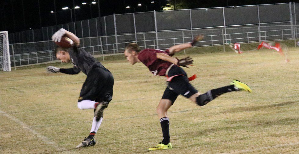 Our safety (that's me) making a tackle before the other team can score.