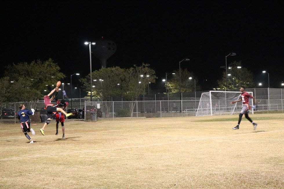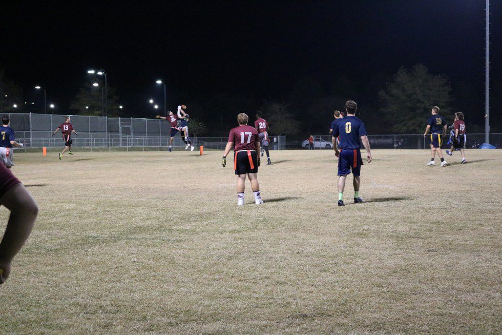 One of our other cornerbacks making a great play in the end zone. He is only 5'7" but he blocked the ball from someone who was around 6'.