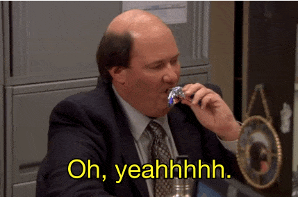 Because like Kevin, after "doing the number all day," I absolutely want to eat 20 candy bars and shove a whole jar of M&M's in my mouth.