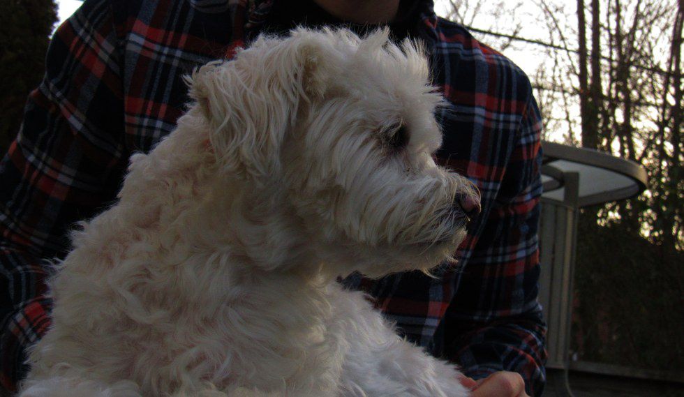 Snowflake is a Maltese, who loves eggs and being king of the block.