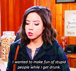 A crowded bar filled with people, loud music and conversation. *Chugs drink*