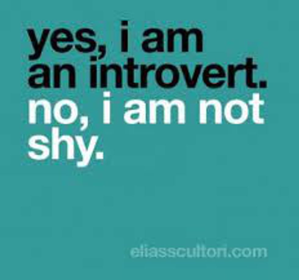 Per Psychology Today, “Shyness is the awkwardness or apprehension some people feel when approaching or being approached by other people. Unlike introverts, who feel energized by time alone, shy people often desperately want to connect with others, but don't know how or can't tolerate the anxiety that comes with human interaction.” Some introverts, like myself, are shy. But not all of us are. It goes back to our interests. If we can’t add to the conversation, or the conversation does not interest us, we say nothing.