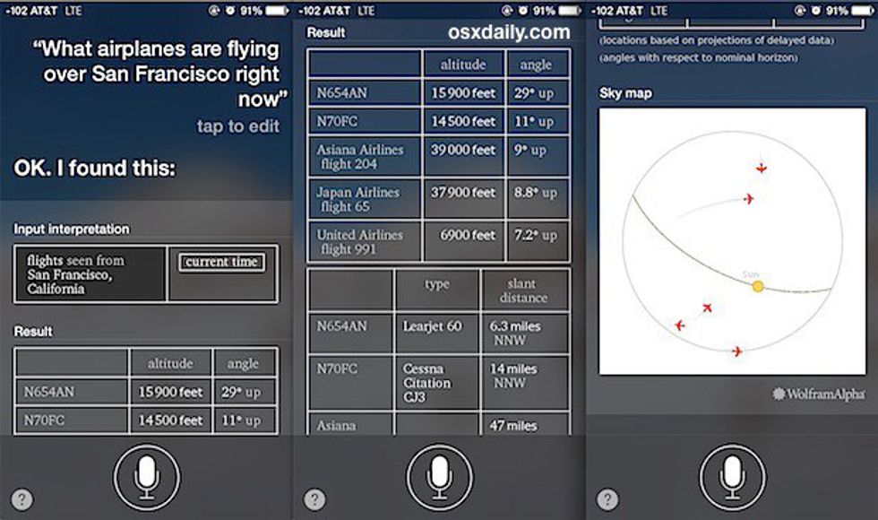 Curious to know if any flights are passing right above your head at this exact moment? Hold down on the home button and ask Siri "Planes overhead?" and see what she says.