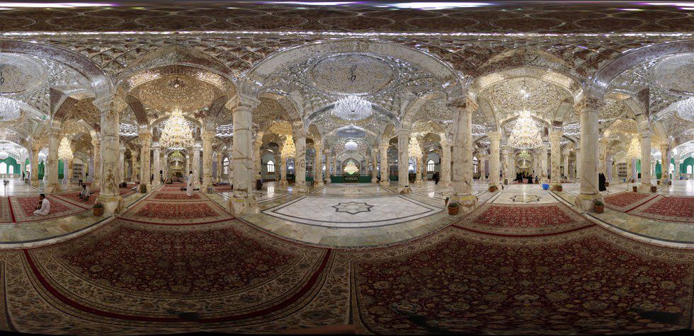 Inside the shrine are mirrored tiles and silver walls, with decadent diamond chandeliers.