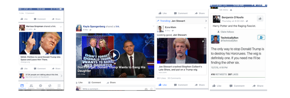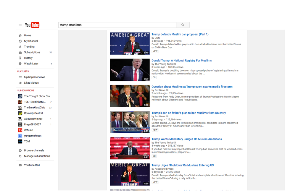 Why? Proceeding one step further, a key pattern began to arise. When these articles were clicked and explored and opened even without scrutiny, I noticed a transformation on the current home pages of these social media platforms, which shortly displayed more matters connected to Trump, and continued to do this throughout the next few days and eventually leading into weeks. Interestingly enough, patterns of polarization were noticed as clicking links that did not favor Trump’s statement tended to appear more frequently, as the majority of users on the social network I am affiliated with maintained this stance on this issue. Essentially the platforms connected to my accounts prioritized any information, (whether keyword, headline, publication, or subject) connected to negative reactions to Trump’s Muslim stance, and all that pertaining to the matter, remained at the top of the newsfeed or search results.