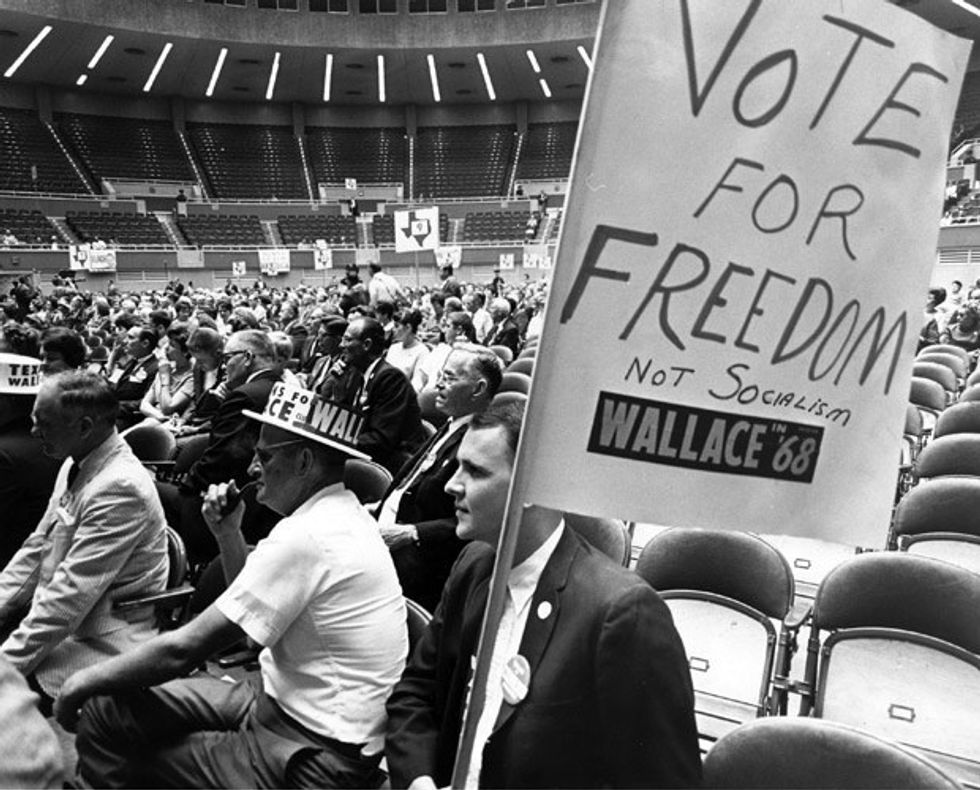 The presidential election of 1968 saw many low points in the history of our Republic. The assassination of Sen. Robert Kennedy, the brutality used on protesters at the Democratic National Convention, all the while a seemingly endless war drudged on in the background, unpopular with both sides of the aisle. Tensions between races rose as the aftermath of integration policies led to more interactions between black America and white America. Just as at every point in human history, demagogues arose to exploit the fears and worries of the people. The campaigns of Republican nominee Richard Nixon and Independent candidate Governor George Wallace were based upon the more macabre notions of the electorate. Obviously Richard Nixon was more nuanced with his approach to race issues and government than Wallace, but both gained support from similar demographics. The stump speeches and debates of 1968 have long past, but their influences can still be seen today.