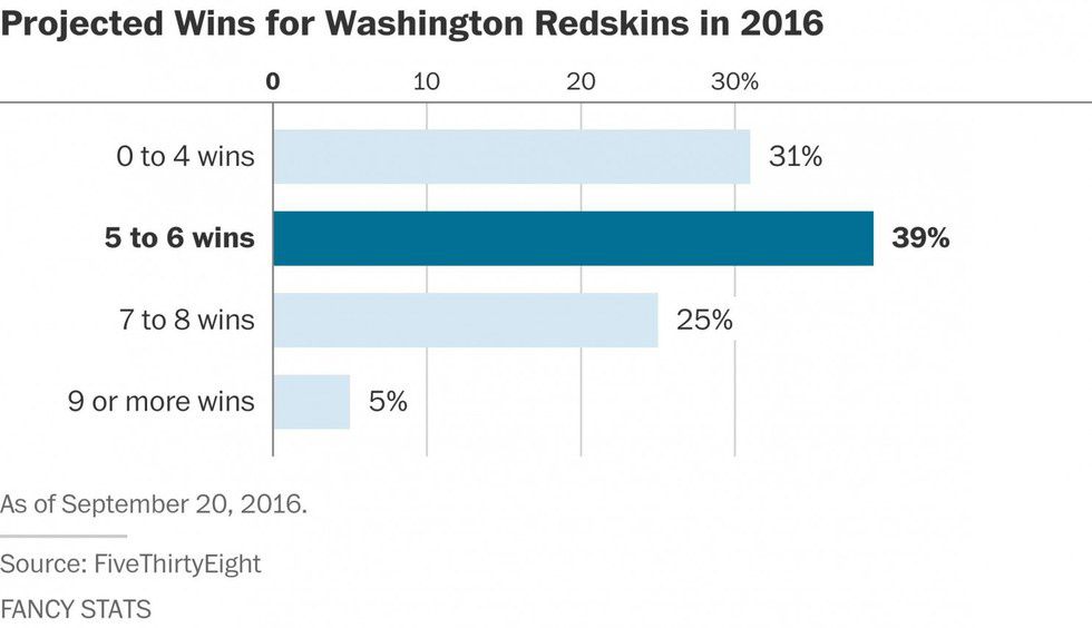 The Redskins are currently sitting at 0-2 after losing two tough home games. A 0-2 start does not necessarily mean that a team won’t make the playoffs but the odds only get worse after that. In addition, according to FiveThirtyEight’s simulation forecast’s for the season, they predict them to finish last in the NFC East and win between five and six games. Winning only five to six games gives them only a 10 percent chance at reaching the playoffs. There is some hope if they are victorious at MetLife in week three. The Redskins started 1-2 in both 2012 and 2015 when they won the NFC East. Do not give up on the season yet fans!