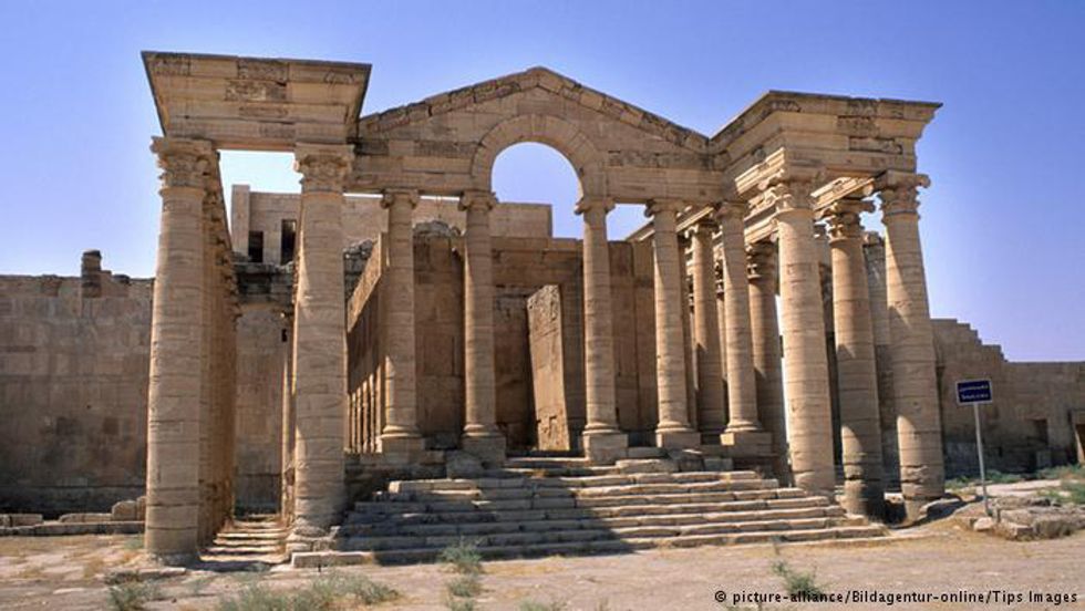 Pictured above(left), the temple, palaces, and buildings of Hatra, just one of the many ancient monuments at Nimrud that have been reduced to ash(right).