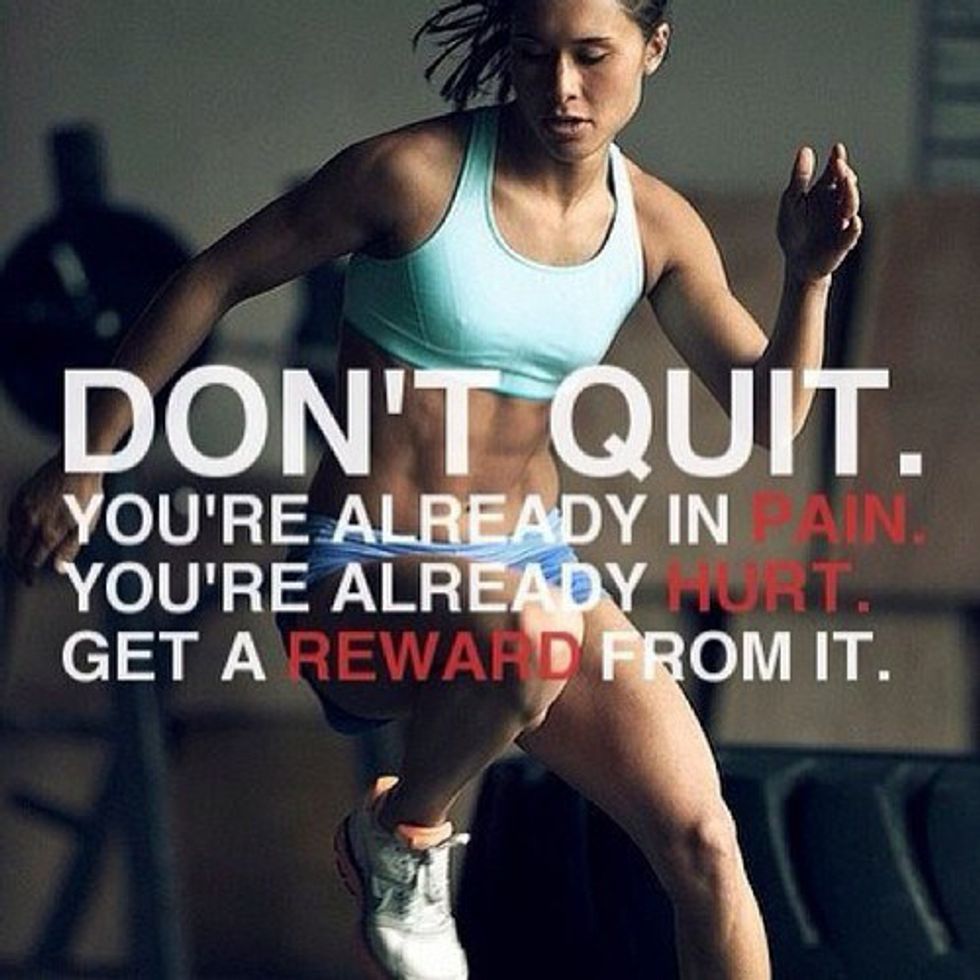 First off, if you are in pain while exercising, PLEASE take a break or just STOP your workout. You can try again another day when you are feeling better. This picture tells people that it's okay to punish yourself while working out because you will get the body that you want in the end. However, pictures such as these reinforce an unhealthy relationship with our bodies. If we end up quitting our workout or feeling that it wasn't as good as it could be, our self-esteem and confidence can go down and make us feel like failures. Instead of loving our bodies for the things that it can do, we punish ourselves for the things that it can't.