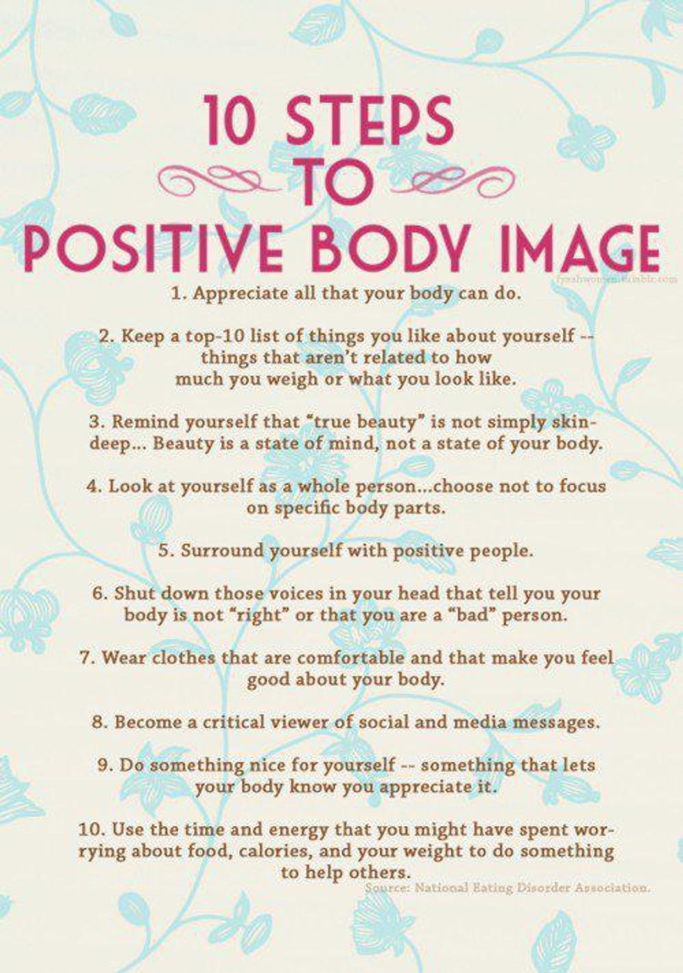 Now, I’m not saying that people shouldn’t be proud of their weight loss journey. What I’m saying is that these “motivational” posts can reveal negative messages and glorify the idea of being thin. Some of these posts do not encourage body positivity, body acceptance and healthy self-image. Often, they promote that our size and weight defines who we are.