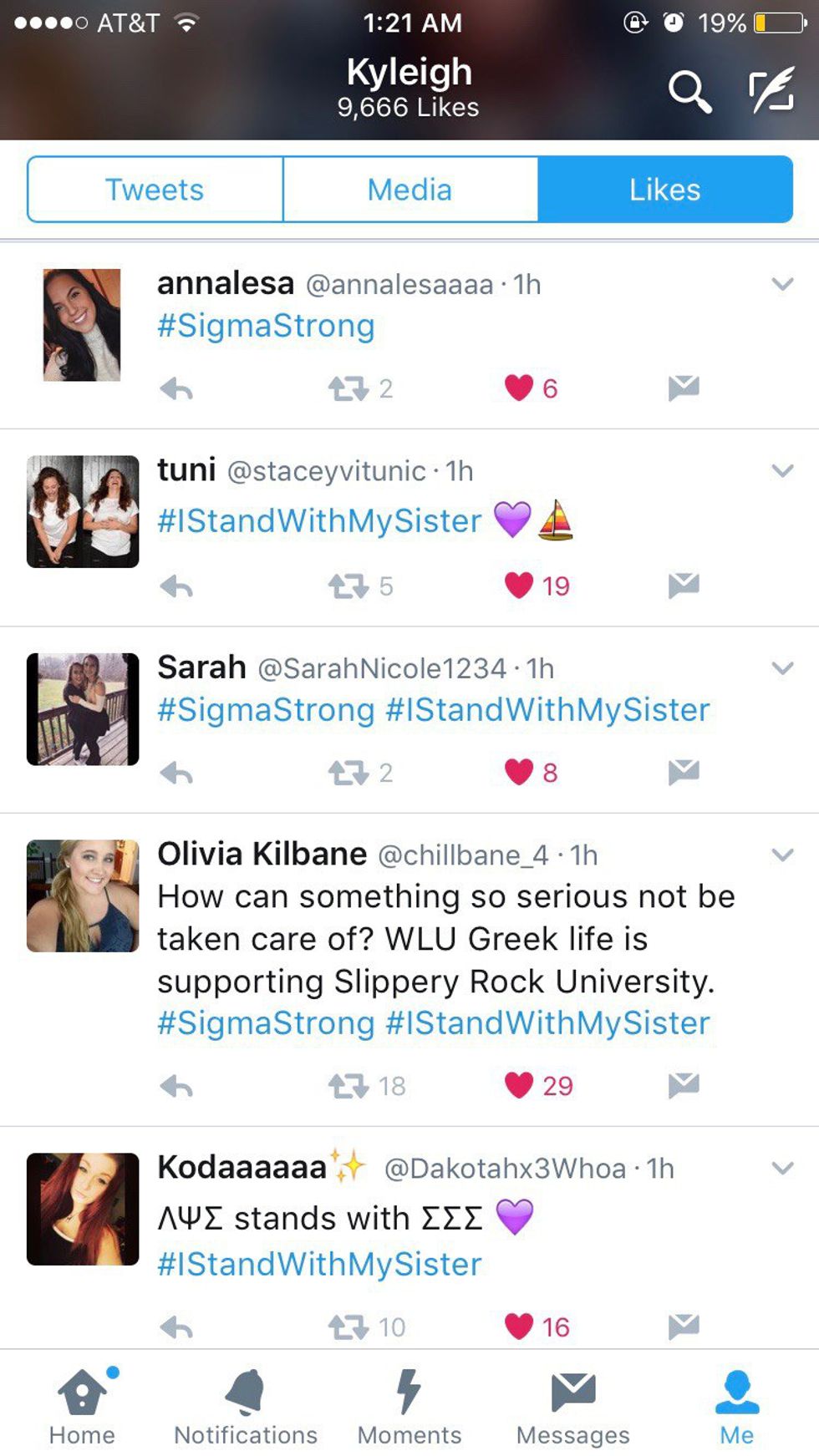 Sororities not only from SRU, but West Liberty University, Marshall University, WV Wesleyan College, University of Akron, and Marietta College have all adopted the hashtags to show support.