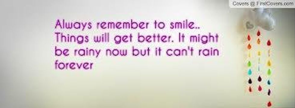 The world is a rough place, and most know that already. Look around and see the people who are trying to be there for you. There is love in the world, one just has to open their eyes and see it. Sometimes it helps to get away from all the stress, sometimes it helps to listen to music, sometimes it's okay to cry. Trust me, if you feel like crying, cry! This is probably one of the most natural thing to do when one is feeling low. While society tells you that crying is bad and to just move on, do not listen to them. Cry your eyes out and take your time, because that is how you know it always gets better.