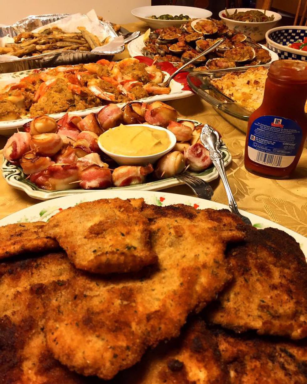 Another tradition we have is our holiday gatherings. The best example of this is Christmas Eve: the feast of the seven fishes. This is an Italian tradition that reflects the abstinence from red meat on Christmas Eve, which is technically a fasting day. It's a wonderful meal with all kinds of seafood prepared all different ways, and I look forward to it every year.